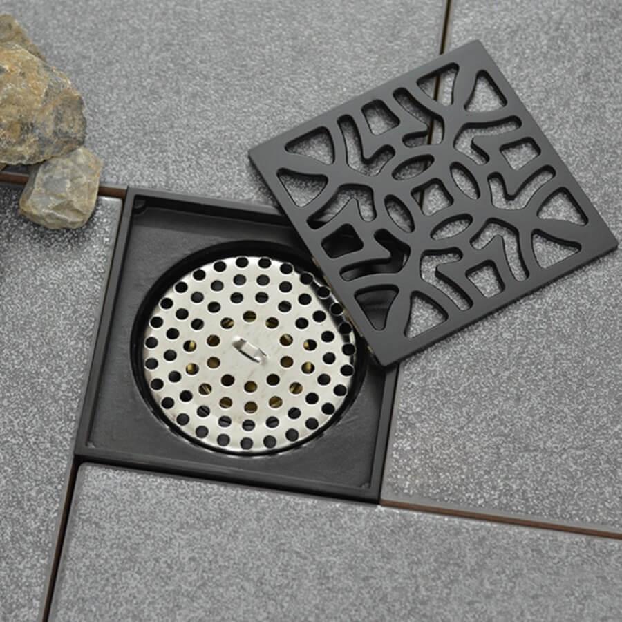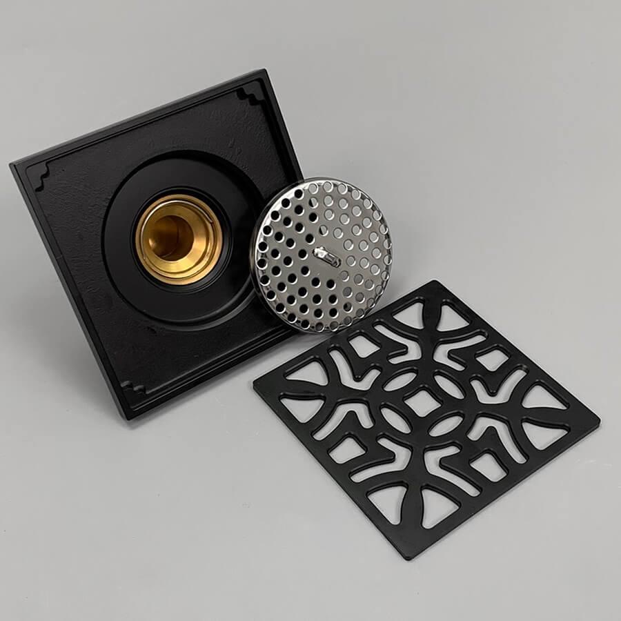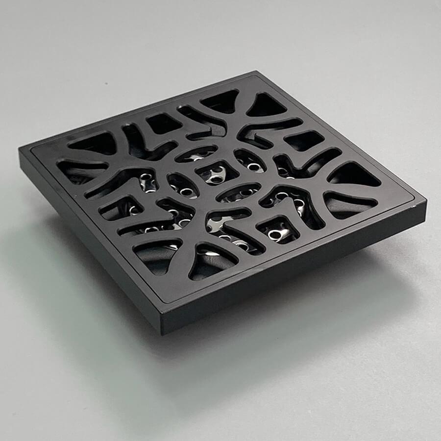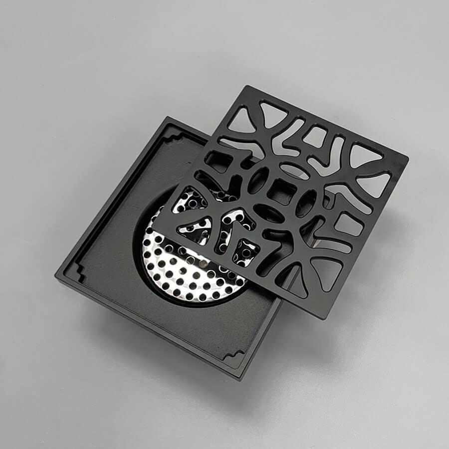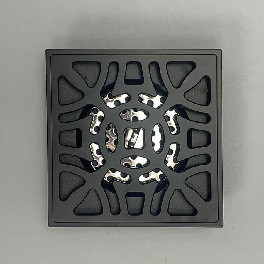 Bề mặt của phễu thu sàn chống hôi tuyệt đối DTD001 có màu đen cùng họa tiết trang trí hiện đại đẹp mắt giúp mang lại không gian sang trọng cho phòng tắm của gia đình.